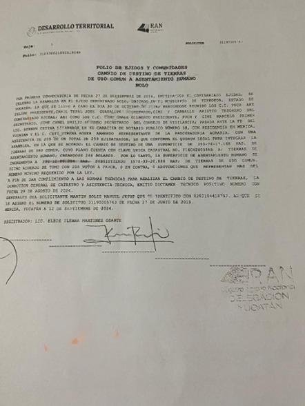 Nolo, Tixkokob, Yucatán.— Ejidatarios del poblado de Nolo denunciaron un presunto intento de despojo de 396 hectáreas de tierras de uso común, que atribuyen al Grupo GEA, empresa inmobiliaria dedicada a la construcción de viviendas. Según los testimonios, la compañía habría intentado validar asambleas irregulares, compras de voluntades y el apoyo de exautoridades ejidales y personas vinculadas a dependencias gubernamentales para avanzar con el proyecto.