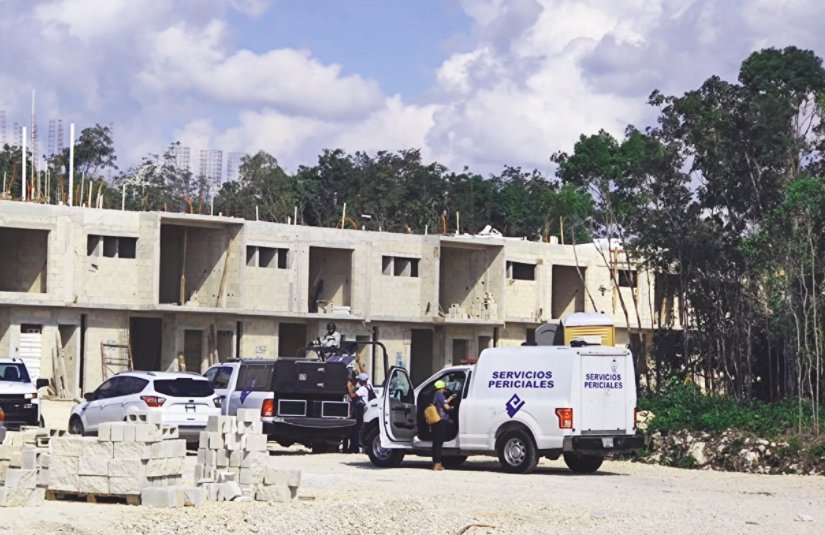 Policías ministeriales y elementos de las fuerzas federales realizaron un operativo para localizar cadáveres de personas desaparecidas en la avenida La Rioja con calle El Roble en la Supermanzana 319, en Cancún.