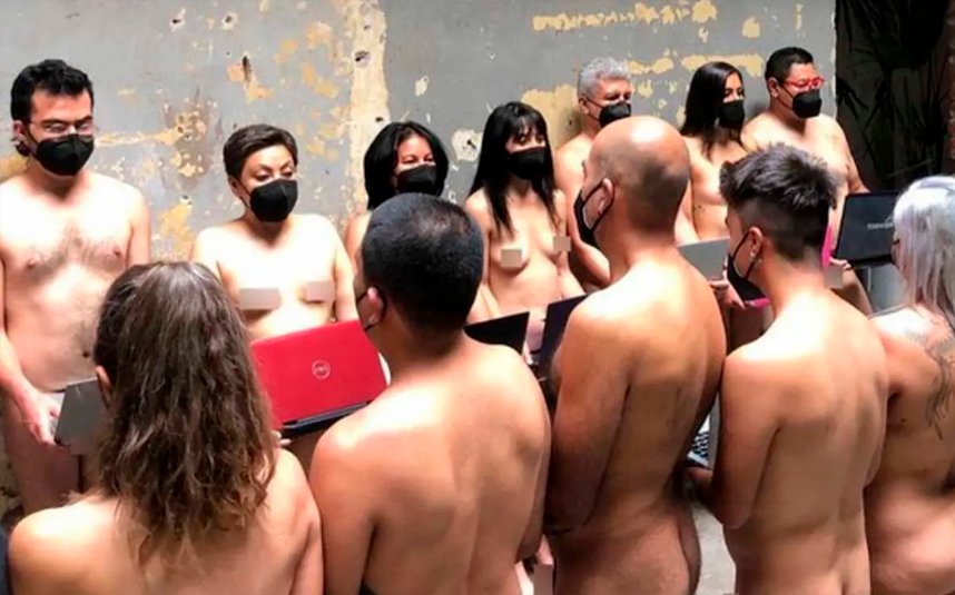 El artista agradeció y reconoció la participación de los voluntarios, que posaron únicamente con una computadora.